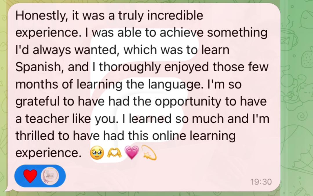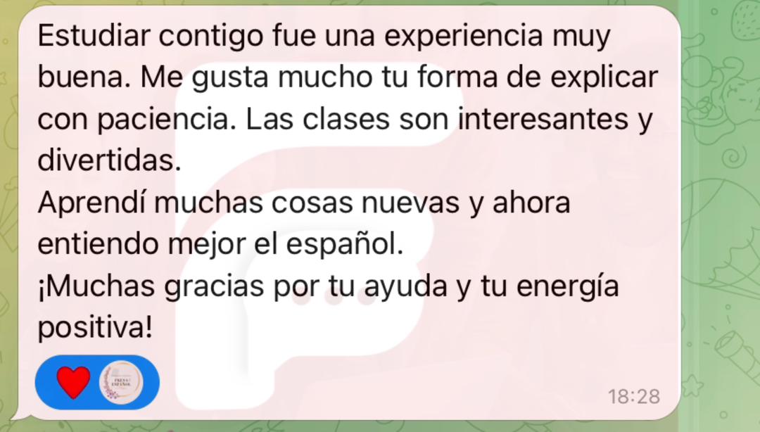 اكتشف مستوى لغتك الإسبانية في أقل من 5 دقائق عبر اختبار مجاني وفوري على واتساب.ابدأ الآن واحصل على تقييم دقيق ونصيحة لمستواك المناسب.