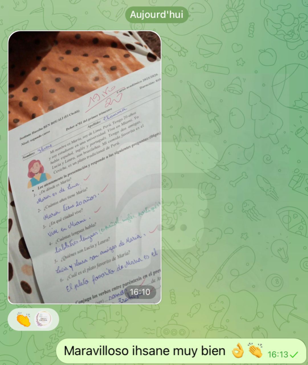 الدراسة تتم مباشرة عبر Google Meet من خلال حصص تفاعلية بين الأستاذة والطلاب، لضمان فهم أفضل ومتابعة فعّالة.